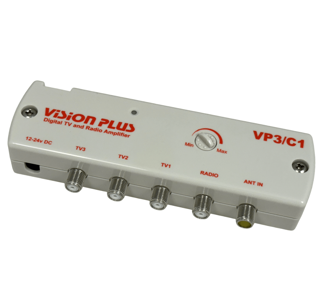 The Vision Plus VP3 Class 1 Digital Amplifier is fully wideband for terrestrial TV transmissions and is designed to be used with Vision Plus STATUS (with ORANGE logos only) and IMAGE directional and omni-directional antennas.